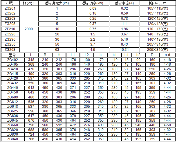 三、ZG系列慣性振動器主要技術參數見下表。