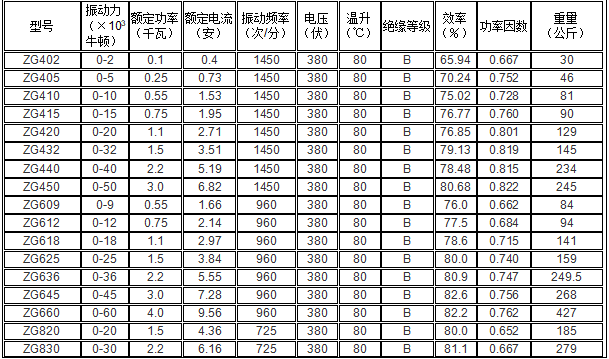 ZG系列振動電機(振動電機)是八十年代初由機電部、冶金部、煤炭部聯合設計組在引進日本先進樣機基礎上設計研制的。一九八四年通過部級鑒定,結論認為:該產品參數先進、結構合理、使用壽命長,主要技術參數接近國外同類產品先水平,在國內處于領先地位。該機最大特點是功率小,激振動大,尤其采用了國內先進的裝配技術,運行可靠,連續使用壽命長達10000小時以上。功率—激振力指標與日本相等,高于西德及國內同類產品,而激振力為振動機械設計、選型的主要參數。故在需同樣激振力的情形下,選用該機功率小、耗能省,自重輕。